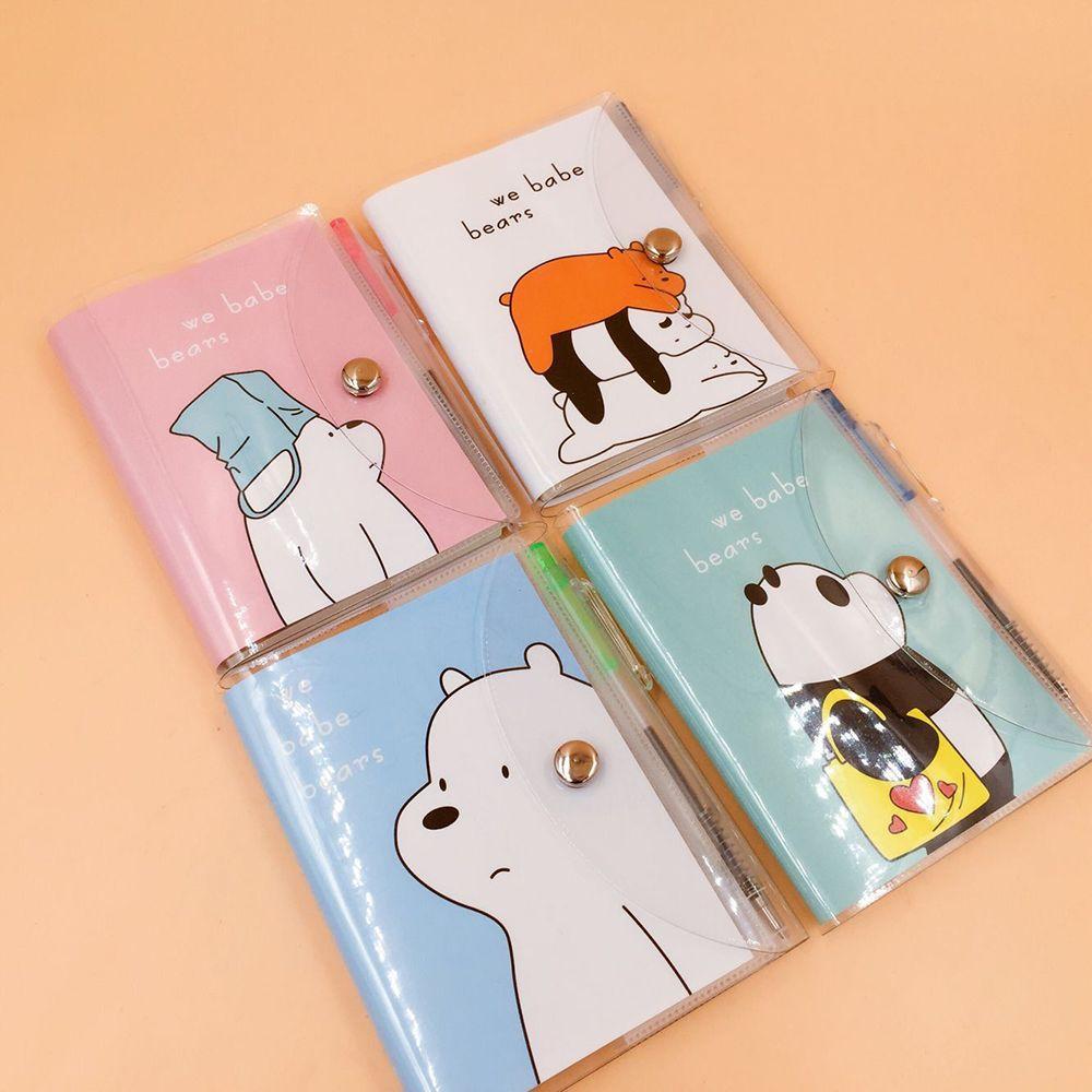 1 Set 8*11cm Cute Bear Cat Notebook with Ballpoint Pen Notepad Button Diary Book Exercise Book Escolar Papelaria School Supply